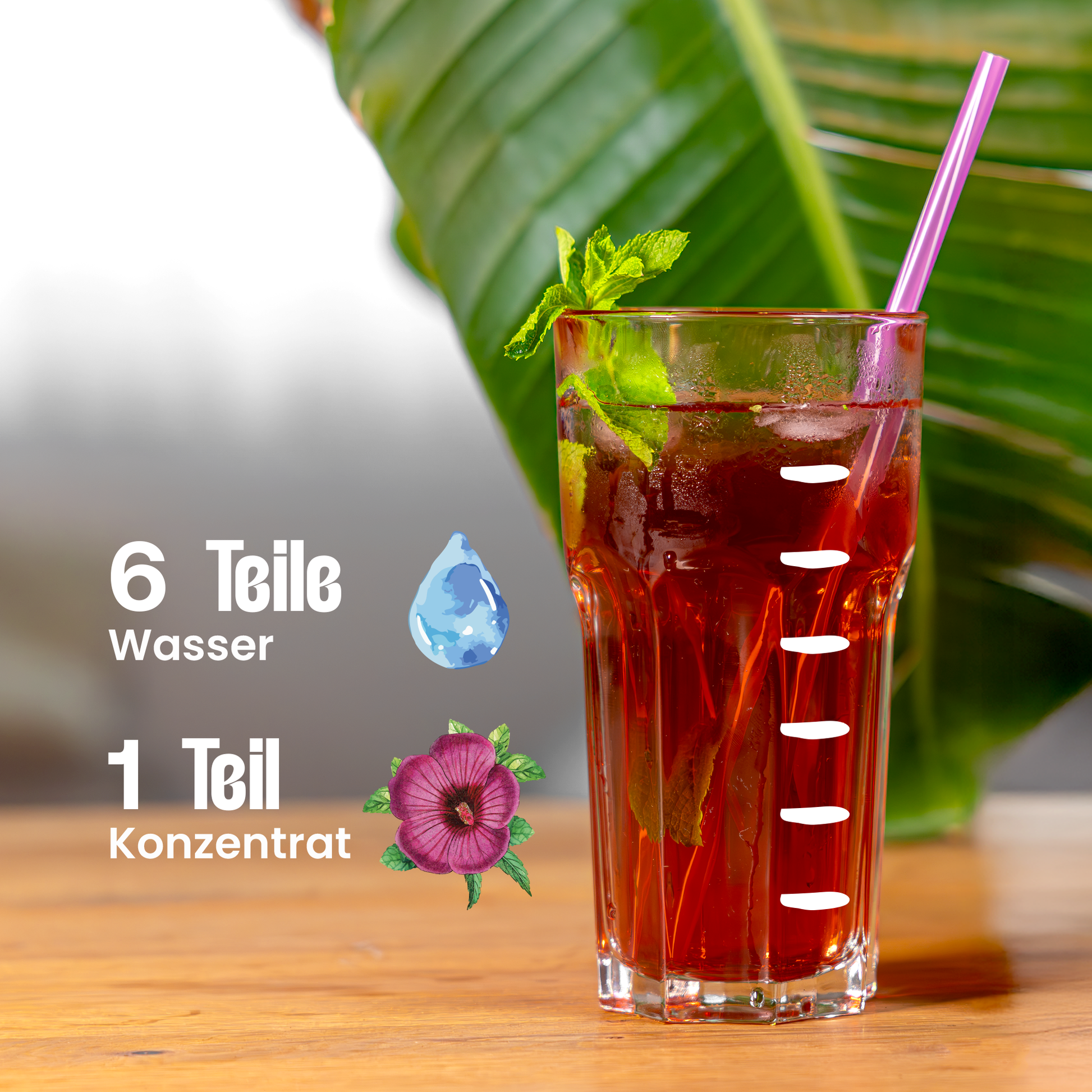 Für einen Liter Eistee empfehlen wir ca. 150ml Konzentrat